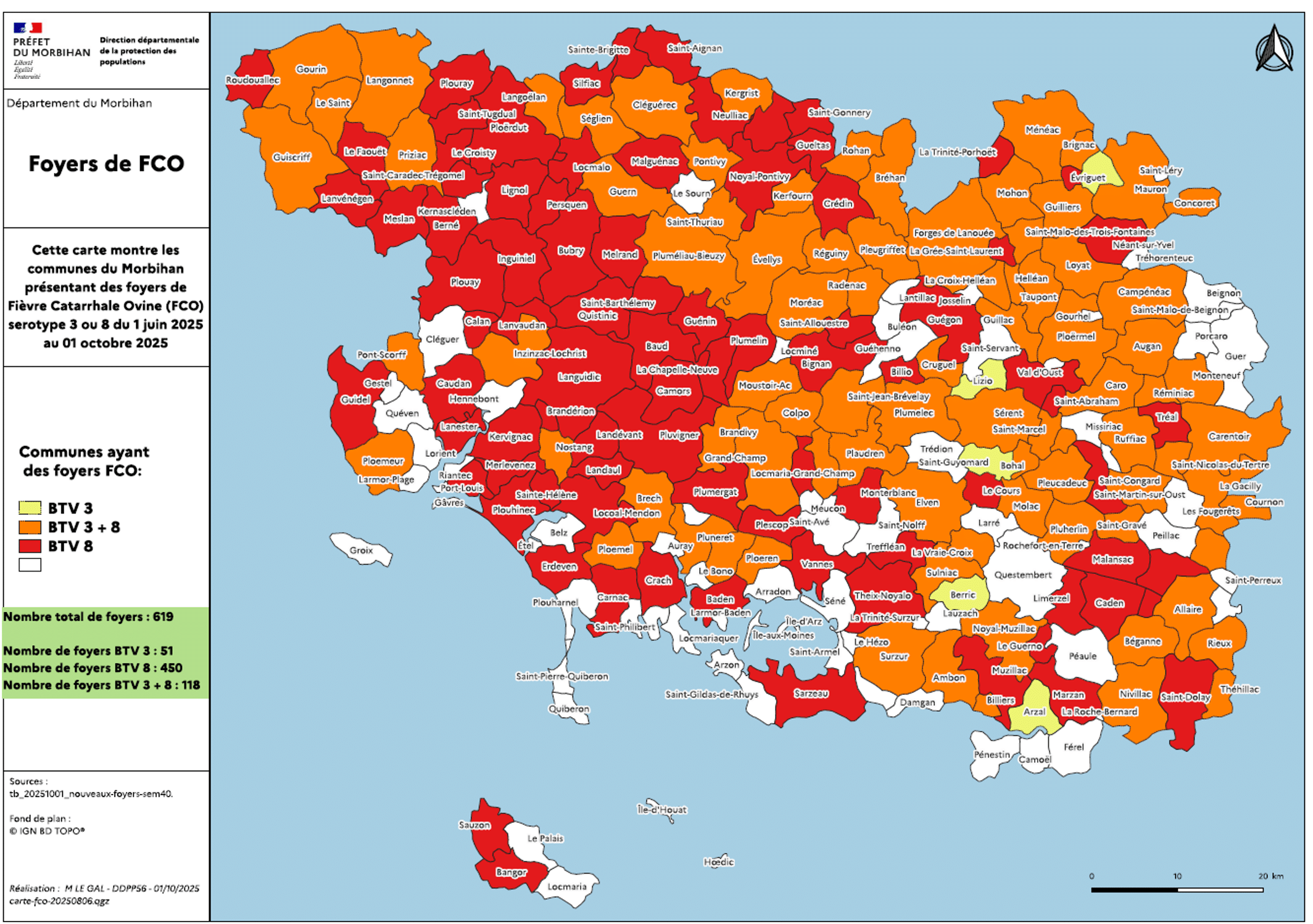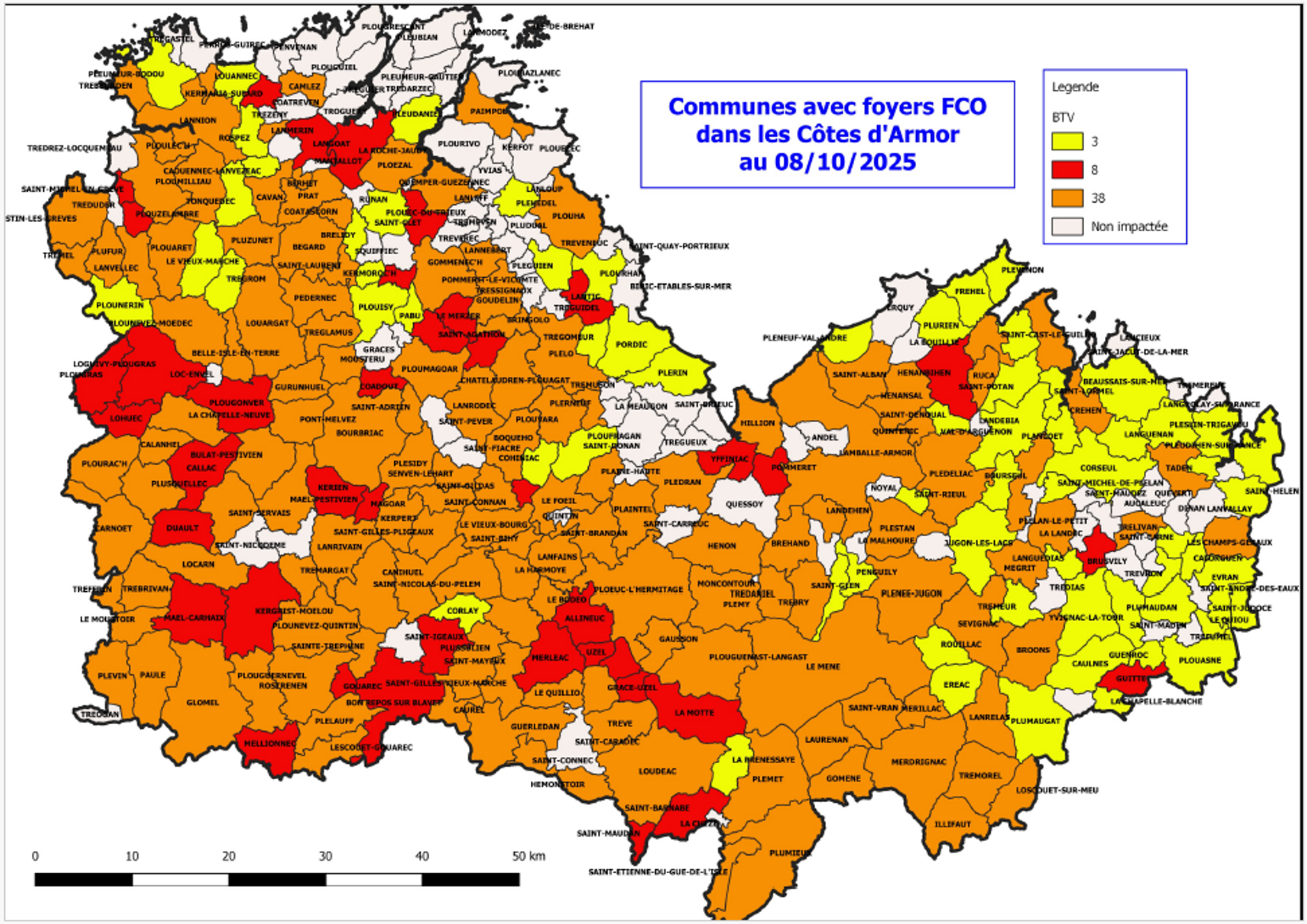 Voici les dernières cartes publiées pour les départements des Côtes d’Armor (carte datée du 08/10) et le Morbihan (01/10).