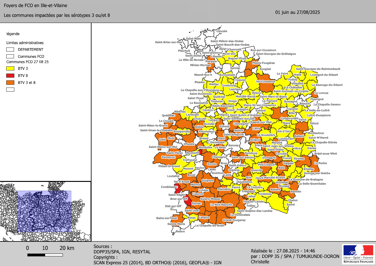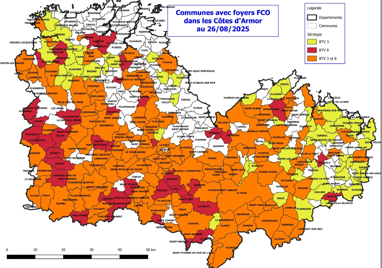 Voici les cartes partagées par les DDPP pour les départements Bretons.