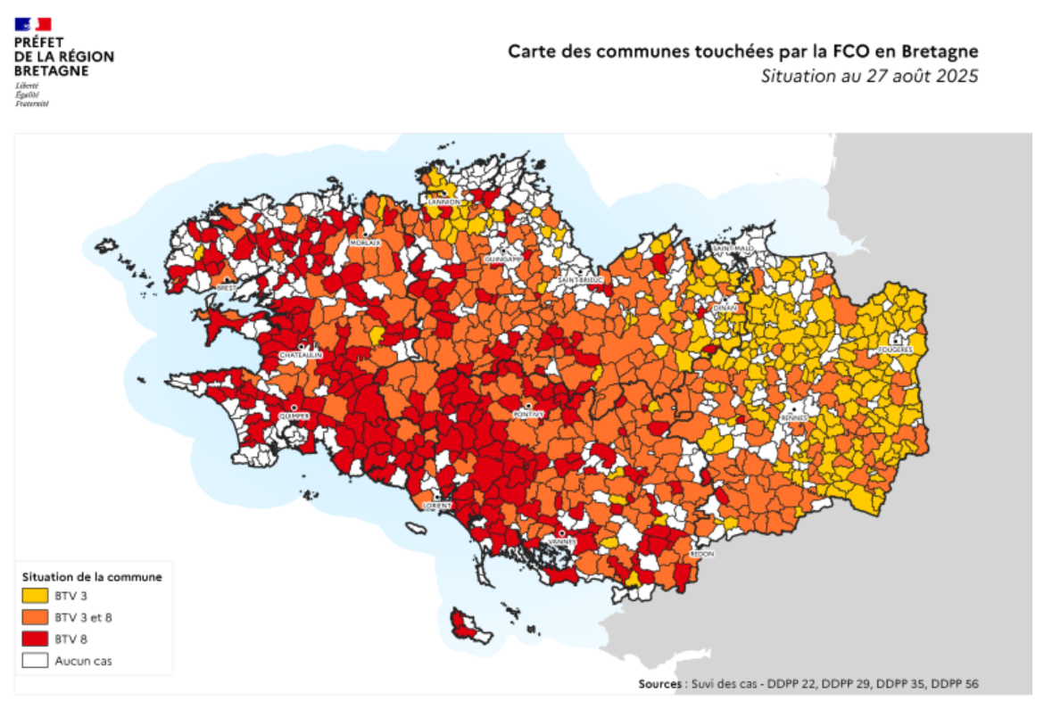 Le nombre de cas de FCO 3 et 8 continue d’augmenter dans les départements Bretons.